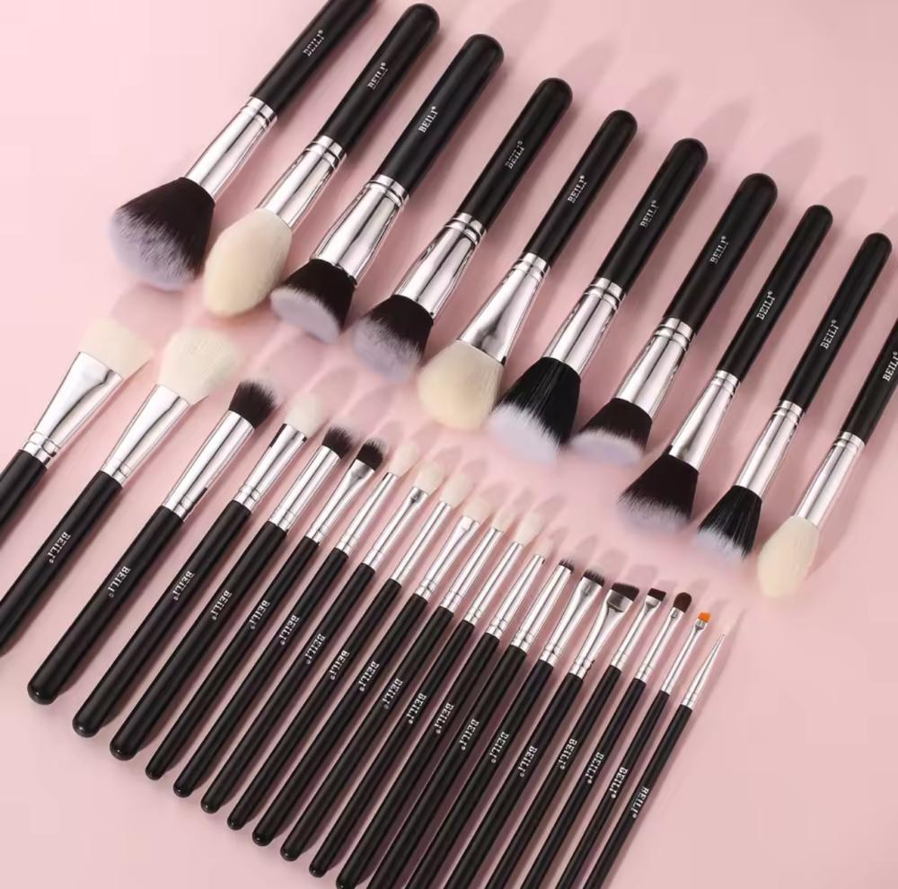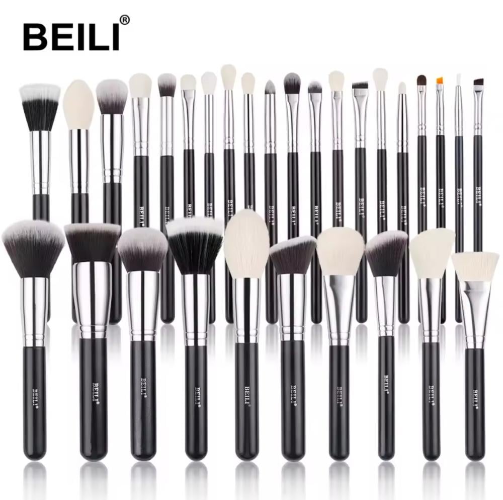 BEILI الأسود ماكياج فرش مجموعة المهنية الطبيعية الماعز فراشي شعر الأساس بودرة كونتور ظلال العيون يشكلون فرش